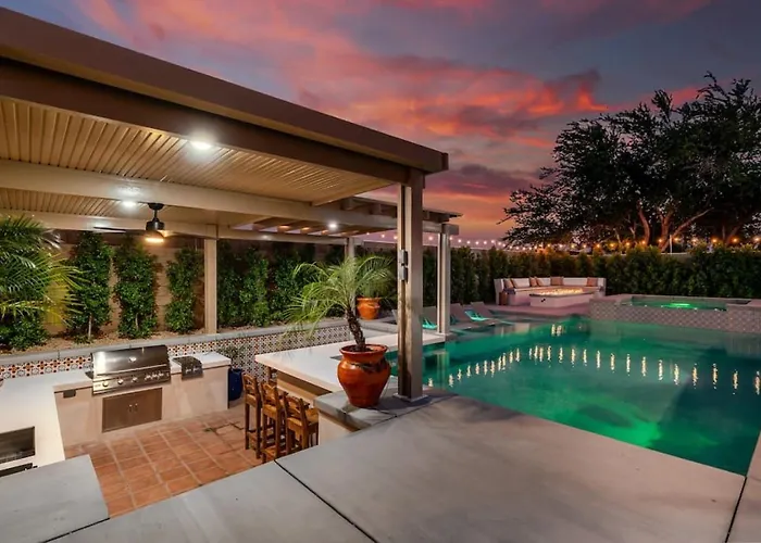 La Hacienda San Miguel Pool And Spa With Outdoor Kitchen Villa si trova a una distanza di 2 km dalla Coachella Valley History Museum e offre ai suoi ospiti la possibilità di rilassarsi in una jacuzzi. Gli ospiti possono praticare ping pong e un biliardo presso la villa, situata a una distanza di 5 km da St. Francis of Assisi Catholic Church.